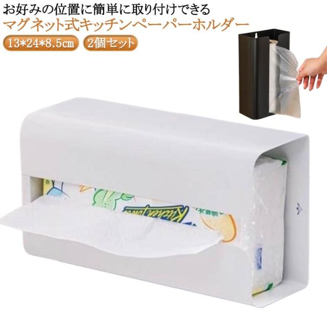 おしゃれ キッチンペーパーホルダー 片手 ティッシュホルダー ペーパーケース 掛け ペーパータオルホルダー 磁石 黒 ブラック マグネット 白 冷蔵庫 壁 ティッシュケース ティッシュカバー ホワイト 2個セット 箱ティッシュ ケース ペーパータオルケース キッチン