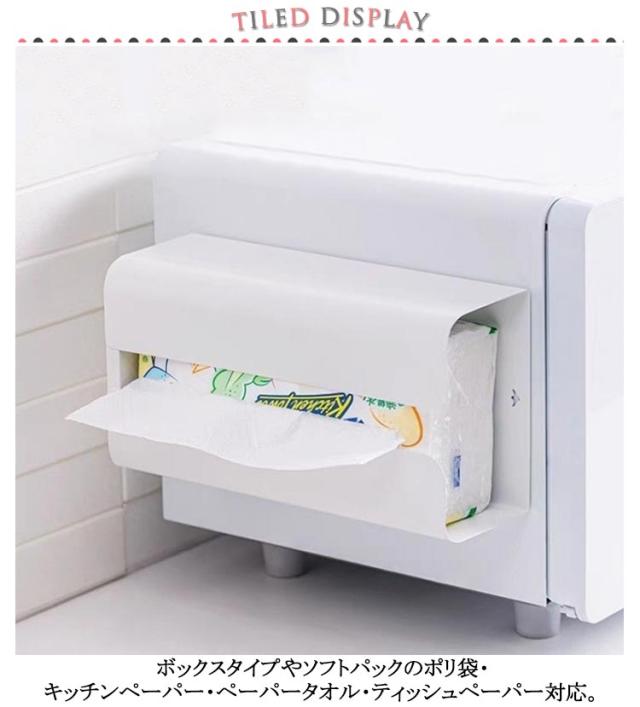 | お好みの位置に簡単に取り付けできるマグネット式キッチンペーパーホルダー。 ボックスタイプやソフトパックのポリ袋・キッチンペーパー・ペーパータオル・ティッシュペーパー対応。 シンク周りで使うキッチンペーパーやポリ袋を浮かせて収納。 差し込むだけの簡単構造。蓋がないので取り替える際の手間が省けます。 コンロ横に設置することで油汚れなどの拭き掃除に便利です。 | |
