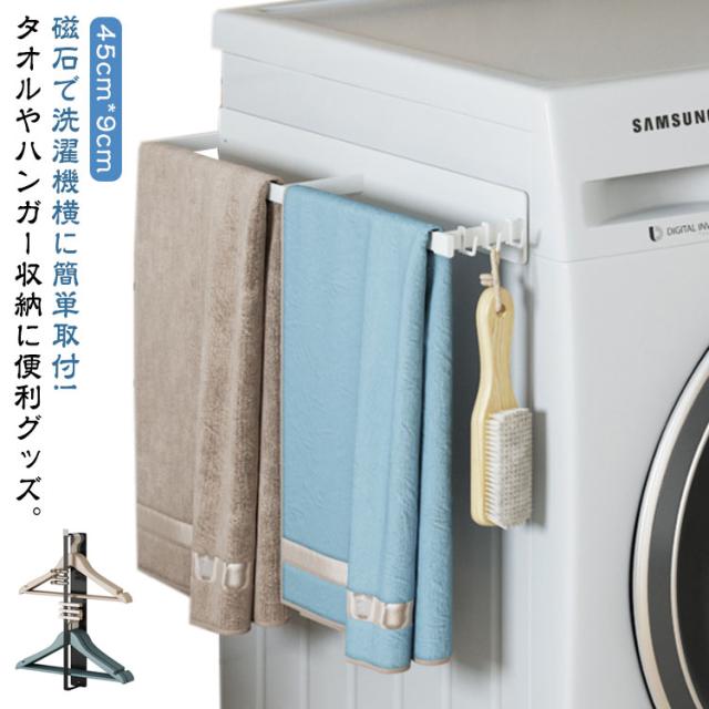 洗濯機 タオルハンガー マグネット ラック バスタオルハンガー 洗濯機ラック 洗面所 浴室 洗濯機 横 サイド ハンガー タオル 収納 ラック 棚 磁石 フック付き タオル掛け フェイスタオル バスタオル 掛け タオル干し ハンガー収納 ハンガー掛け