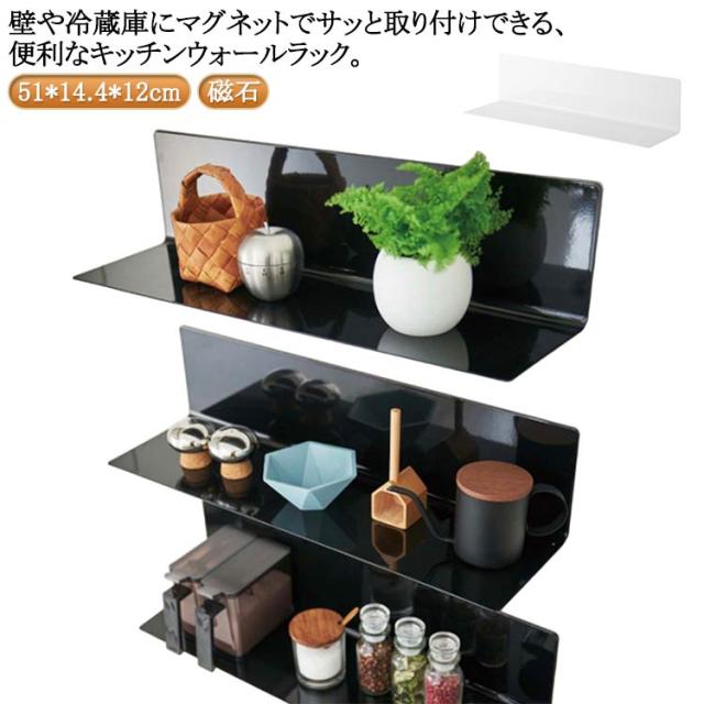 | 壁や冷蔵庫にマグネットでサッと取り付けできる、便利なキッチンウォールラック。【51*14.4*12cm】 マグネット式で穴あけ不要だから、壁を傷つけず、デッドスペースがあっという間に収納空間に早変わり。 シンプルなL字デザインで、インテリアにも馴染みやすく、キッチンはもちろん、リビングや洗面所など様々なシーンで活躍します。 調味料やキッチンツールの整理はもちろん、お気に入りの雑貨を飾ったりレシピ動画を見ながら調理したりと、使い方は自由自在。 スマートに魅せて、キッチンまわりがぐんと快適になる収納アイテムです。 | |