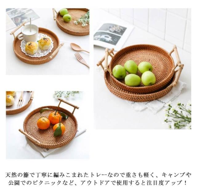 トレー ラタントレイ ラタン トレー 3点セット カフェ トレー 籐 ラウンド お盆おぼん バスケット おしゃれ 北欧 丸型 職人 手織り インテリア キッチン かご ナチュラル 直径22cm /24cm/28cm シンプル 果物バスケット ディスプレイトレイ