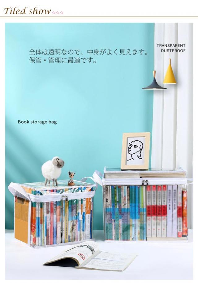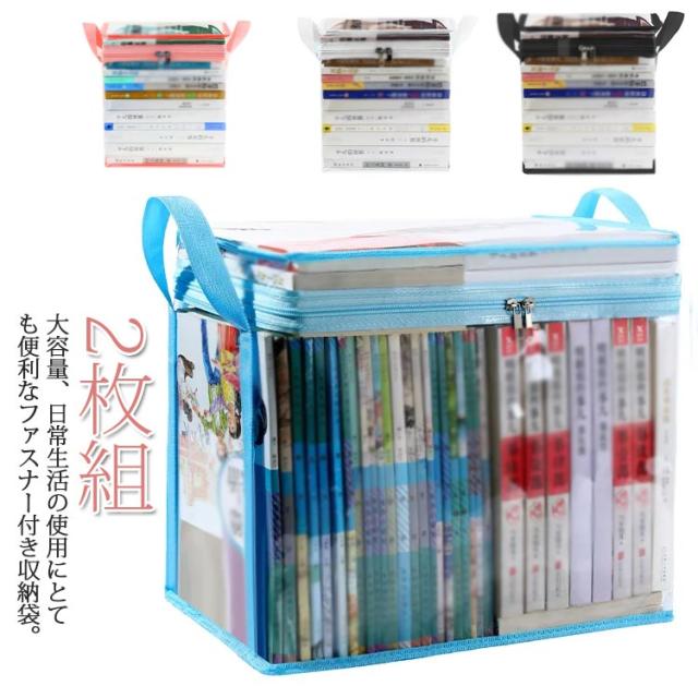 送料無料 本収納 ケース 2枚セット 収納袋 防水 クリア 手持ち付き 収納ボックス 折りたたみ インナーボックス 収納ケース 小物 衣類収納 おもちゃ箱 本 収納 DVD収納 CD収納 コミック収納 四角 小さめ 子供部屋 引き出し 雑貨 整理ボックス おしゃれ