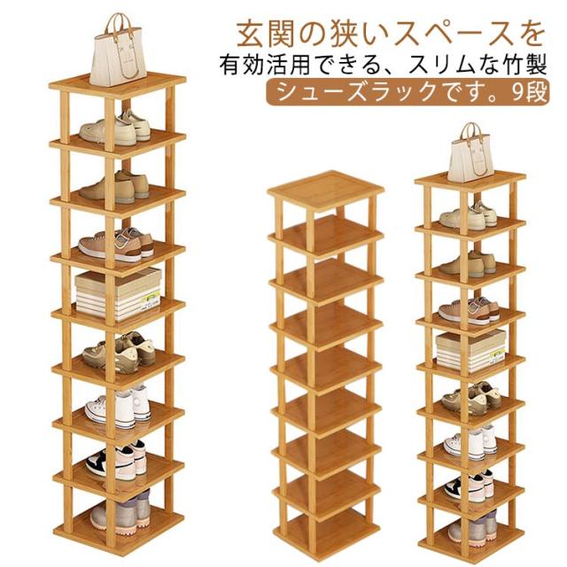 シューズラック 9段 省スペース スリム 靴 収納 大容量 収納 靴箱 シューズボックス 竹製 下駄箱 ラック 靴入れ 省スペース 玄関収納 シューズ棚 靴収納 一人暮らし スニーカー ディスプレイ 北欧 木目 シンプル モダン ナチュラル