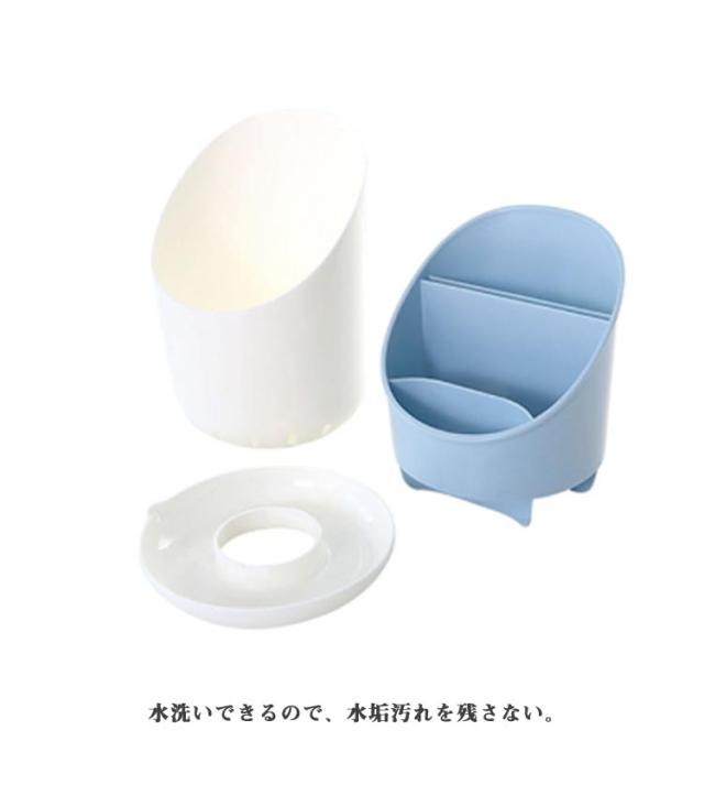 | カトラリースタンド 収納力抜群なのにインテリアになじむシンプルなデザイン 裏側に水切りの穴があいているので、水切りもよく通気性もよい また、持ち上げて傾けるだけで水捨て完了。 水洗いできるので、水垢汚れを残さない。 | |