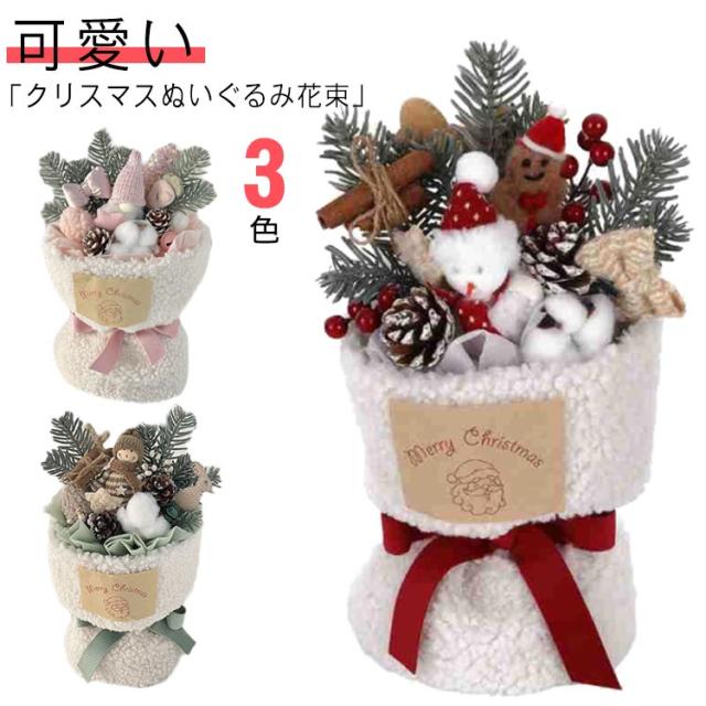 | 「クリスマスぬいぐるみ花束 3色」 ぬいぐるみ付きの可愛い花束なので、特にかわいいもの好きや女性に大変喜ばれるプレゼントですよ♪ クリスマス・お誕生日・記念日や発表会、入学式、卒業式などさまざまなシーンの贈り物として活躍してくれます。 | |