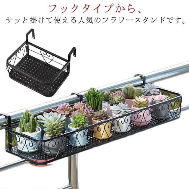 | フックタイプから、サッと掛けて使える人気のフラワースタンドです。 丈夫で耐荷重性に優れた鉄製。たくさんの植木鉢を置いても安定感があり、しっかり支えてくれます。 テラス手すり・階段手すり・柵に簡単に吊るすことができます。 また、家庭用品収納ラック、物干しラックとしても使用可能です。 室内はもちろんサビにくいため屋外での使用もおすすめです。 喫茶店・書斎・花屋・オフィス・庭などの空間に華やかな雰囲気を醸し出せます。 | |