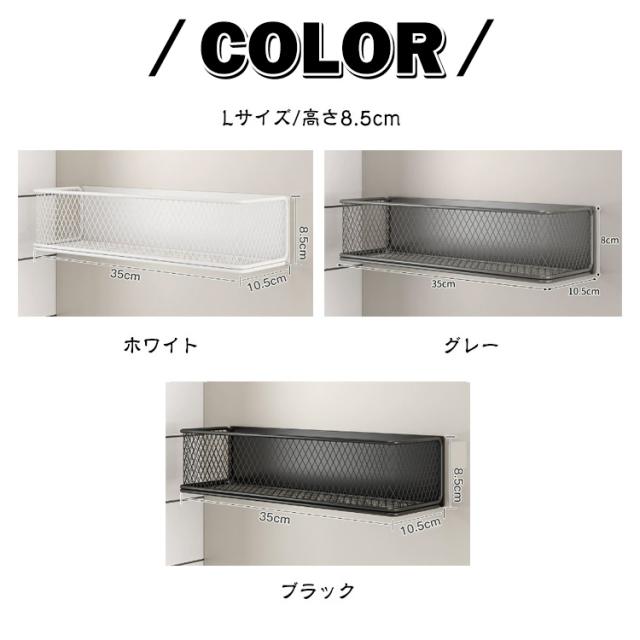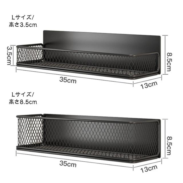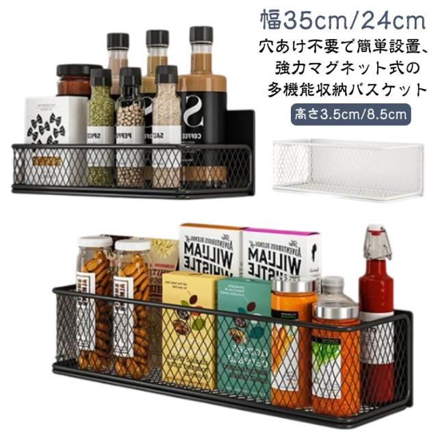 | 穴あけ不要で簡単設置、強力マグネット式の多機能収納バスケット 幅35cm/24cm 高さ3.5cm/8.5cm 【マグネット吸着式収納】 穴あけ不要で冷蔵庫や洗濯機、電子レンジの側面収納、キッチン、バスルーム、防犯ドアなどの壁面収納としてお使い頂けます。磁力で取り付け可能なので、持ち運び便利ですし、繰り返しの利用できます。 【上質な素材】 炭素鋼で作られたこのスパイスラックは、耐摩耗性があり、長時間使っても錆びつくことはありません。防水防汚、耐熱温度70℃、耐冷温度?20℃、どのような環境でも変形しにくいです。 【適用対象】 スパイス、日常小物、ゴミ袋、お酒、風呂用品、化粧品、事務用品などに使用できます。 【綺麗なデザイン】 シンプルな収納ラックは、十分な高さで物をしっかり守れます。ホワイト、ブラック、グレー3色で自由に組み合わせ可能、どのようなインテリアスペースにもお似合いできます。 | |