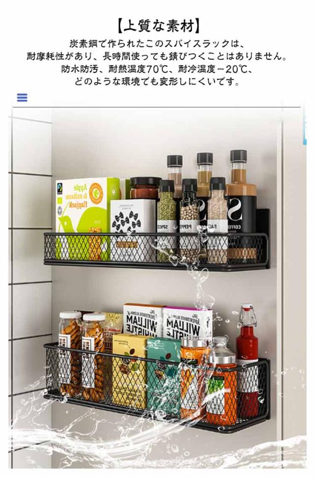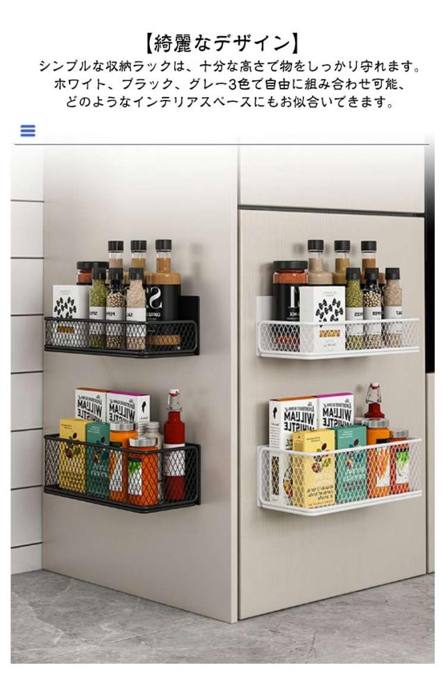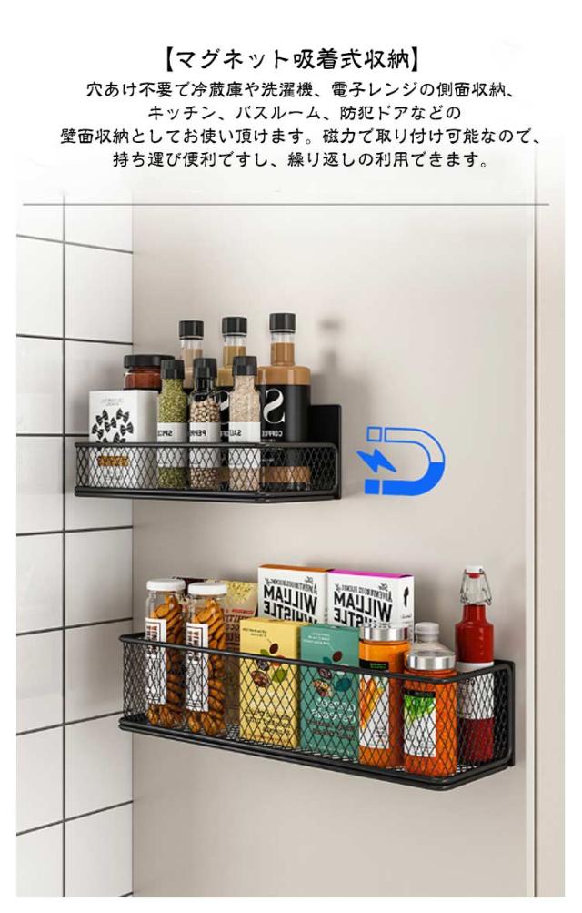 マグネットラック 冷蔵庫用 スパイス 可動式 壁掛け収納 磁気ラック 磁気収納棚 強力 マグネット 穴あけ不要 冷蔵庫 サイドラック 大容量 防水防錆 調味料 収納バスケット 小物入れ 多機能 通気性 マグネットラック 電子レンジ