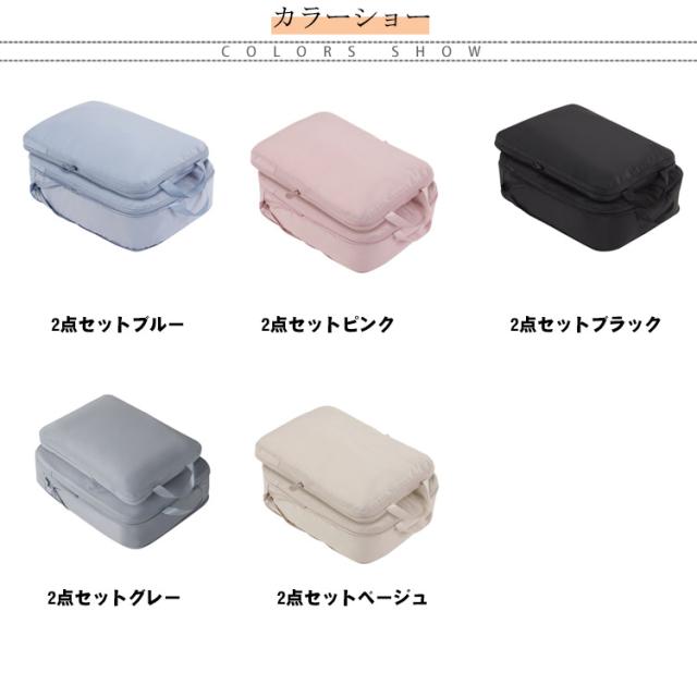トラベルポーチ 2点セット 圧縮バッグ 収納ポーチ 軽量 出張 旅行 便利グッズ 簡単圧縮 コンパクト 衣類 圧縮 かわいい コンパクト 撥水加工 国内旅行 海外旅行 仕切り メンズ レディース L