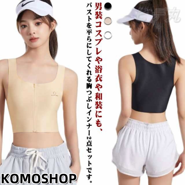 | 男装コスプレや浴衣や和装にも、バストを平らにしてくれる胸つぶしインナー2点セットです。 ストレスフリーのシームレスタイプなので、長時間着用でも苦しくない! フロントファスナーのデザイン、着脱便利。 フラットな生地で着用感も良く、胸をしっかりと覆ってスッキリ収納してくれます。 さらに、肩紐が広めのタンクトップタイプなので、スポーツ時にぴったりです。 バストをペタっとフラットにメイクするから、ボリュームが気になる方や、浴衣やお着物の下着として、コスプレ時の胸つぶしとしてなど、コーディネートを格上げしてくれる1枚です。 | |