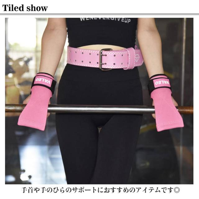 | トレーニング時の握力補助・滑り止めに最適な大人用パワーグリップです。 装着楽ちん!調節可能な面ファスナータイプ♪ 手首や手のひらのサポートにおすすめのアイテムです◎ 握力強化、滑り止め効果も向上、摩擦や圧力から手のひらを守り、手首と前腕の疲労を軽減し、怪我のリスクも減らす!ダンベル、バーベル、ケトルベル、チンニング、デッドリフト、ベンチプレス、ショルダープレス、スナッチなどいろんな種目で活躍! | |