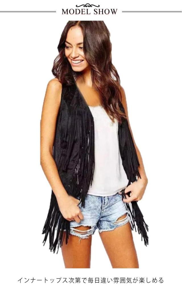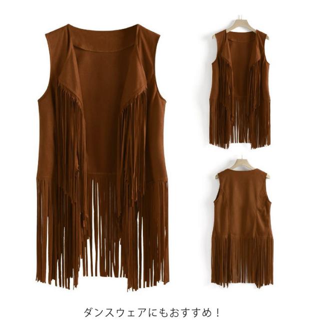 | フリンジ付き、スタイリングに存在感をプラスするおしゃれなベスト。 ふんわり軽やかな着心地、これからの季節に最適。 インナートップス次第で毎日違い雰囲気が楽しめる。 ダンスウェアにもおすすめ! | |