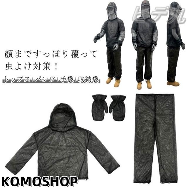 蚊除け 収納袋 虫除けウェア 虫除けネット付き 防虫 パーカー 虫よけ 虫除け 【3点セット】顔まですっぽり 男女兼用 蚊よけ 手袋 パンツ アウトドア 農作業 園芸 庭仕事 メッシュパーカー ガーデニング 畑仕事 ロング丈 ブラック 黒 通気性 お庭作業