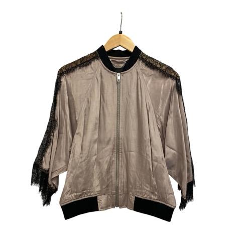 【中古】ディーゼル DIESEL ジャケット ブルゾン 長袖 レース サテン 00E8F200 グレージュ 黒 ブラック レディース