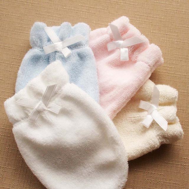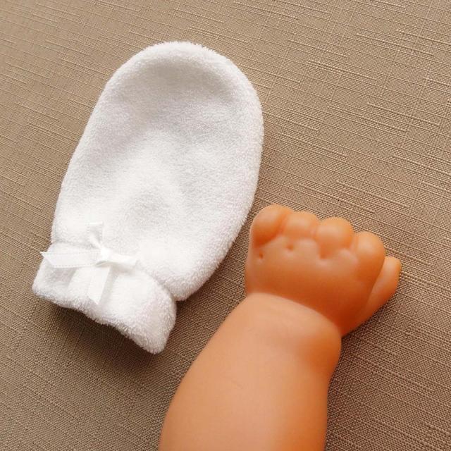 新生児用ミトン 日本製 デラックスパイル ホワイト 赤ちゃん用品 ベビーミトン