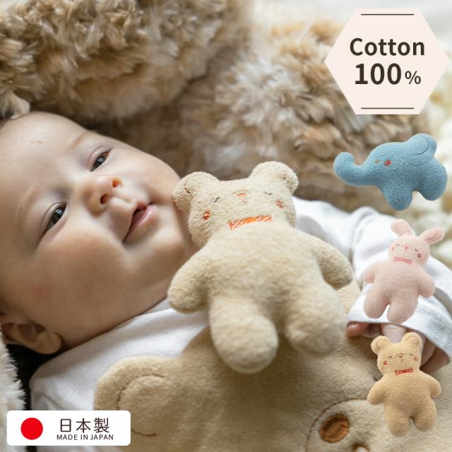 妖精の森 ベビーラトル コットン100 綿100 ベビー おもちゃ 布製 赤ちゃん くま うさぎ ぞう 日本製 可愛い お口に入れても安全 ぬいぐるみ 出産祝い ギフト ベビー プレゼント 0歳 がらがら ガラガラ にぎにぎ ニギニギ ファーストトイ