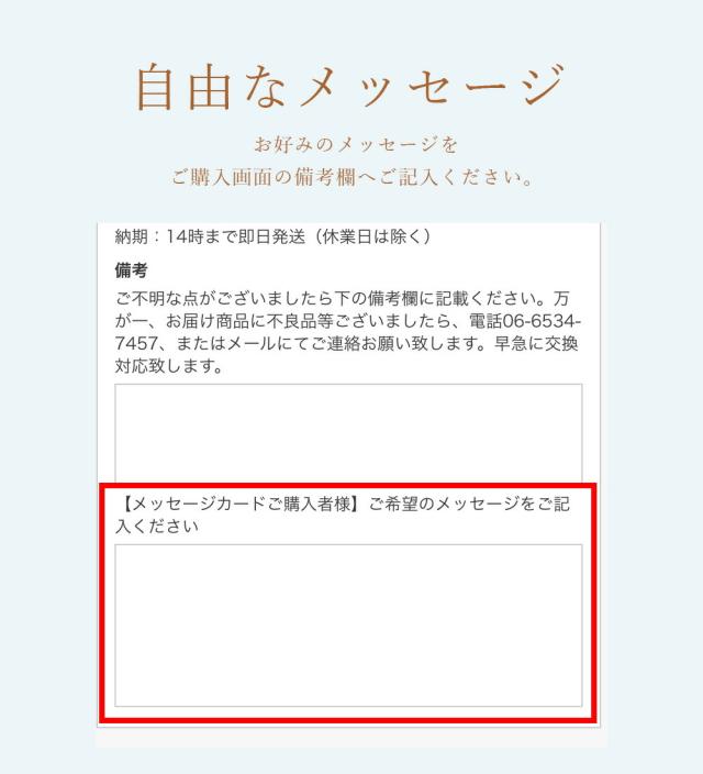 | メッセージ内容は、購入時の備考欄にご記入お願い致します。 |