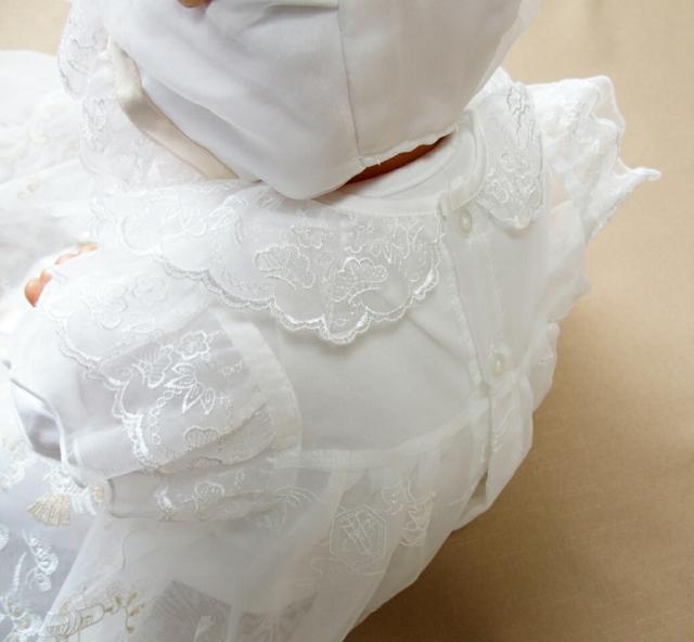 襟元の大きなフリルも、可愛い赤ちゃんの生まれて初めての晴れ舞台で華やかな雰囲気を演出してくれます♪