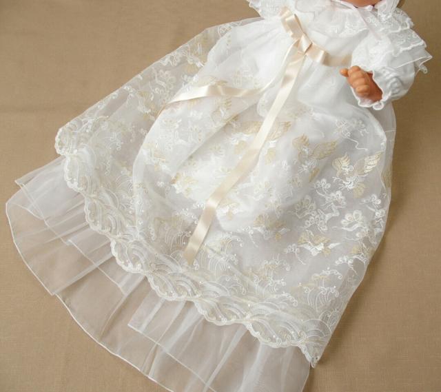 【日本製】豪華な鳳凰刺繍 2段ロングコート お宮参り用ベビードレス セレモニー 新生児用ベビードレス ベビー 服 出産祝い 赤ちゃん ギフト プレゼント 送料無料