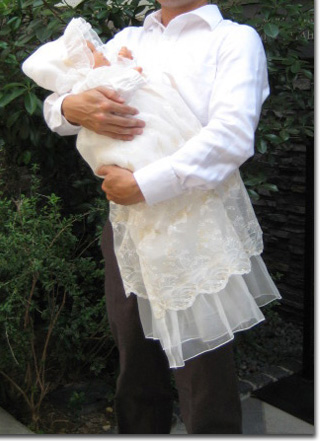上の画像は、商品ページのドレスを着た赤ちゃんを抱っこした時のイメージ画像です。