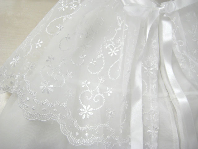 オーガンジーの刺繍柄は上品な柄なので、赤ちゃんのお宮参りにおすすめですよ♪