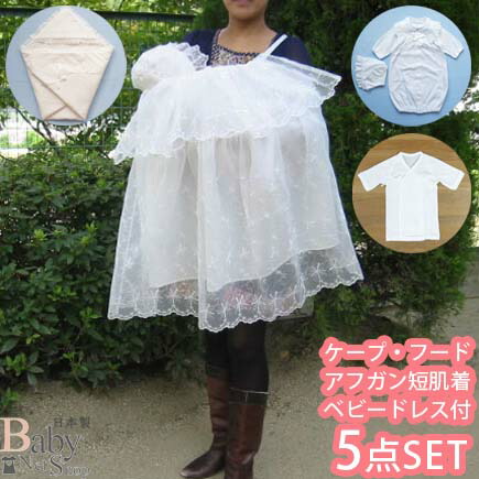 【日本製】お宮参り用ケープ5点セット ベビードレス おくるみアフガン 短肌着5点セット セレモニードレス 新生児 赤ちゃん 初参り 初詣り 出産祝い ギフト 226515