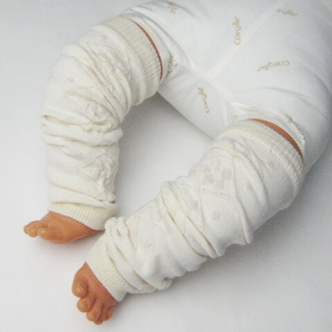 オーガニックコットン ベビー用レッグウォーマー 織り柄 生成り
