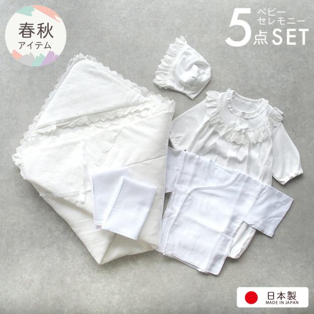 春秋素材 ベビードレス 退院時 お宮参り セレモニードレス ベビーアフガン おくるみ 付き 5点セット セレモニー 新生児 赤ちゃん ドレス 出産準備セット 3152313303 男の子 女の子 日本製