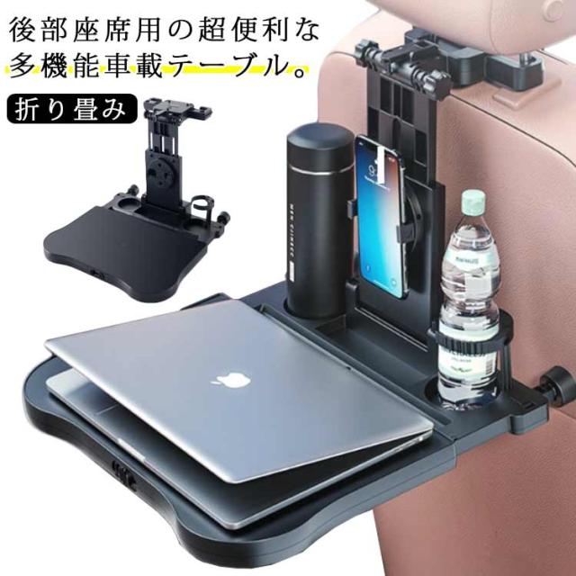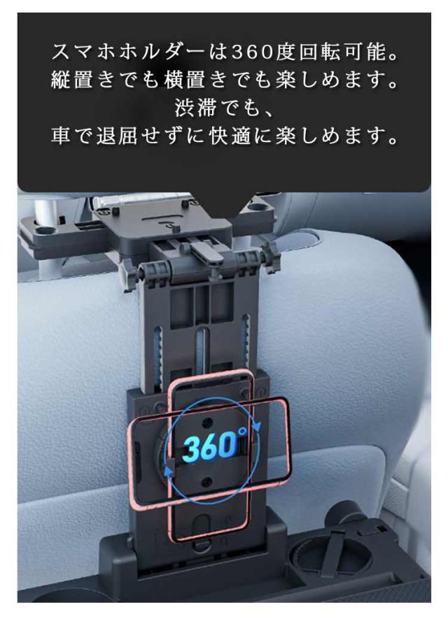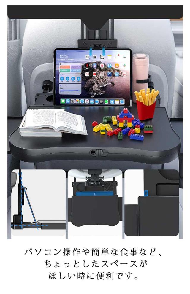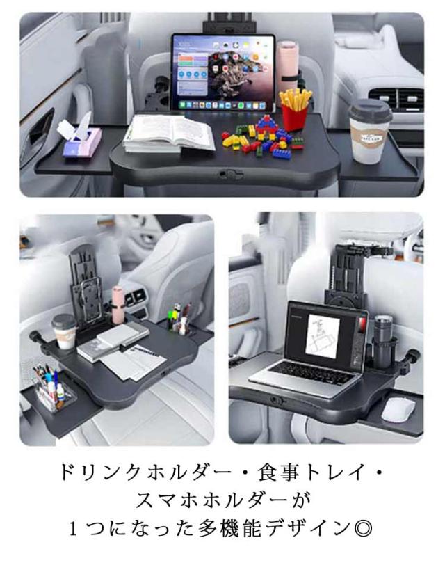 食事トレイ ドリンクホルダー 車載テーブル テーブル 後部座席 ヘッドレストテーブル リアトレイ 車用 小物置き 折り畳み 車載テーブル テーブル スマホホルダー サイドテーブル 角度調整可能 食事 ノートパソコン作業利 簡単取り付け