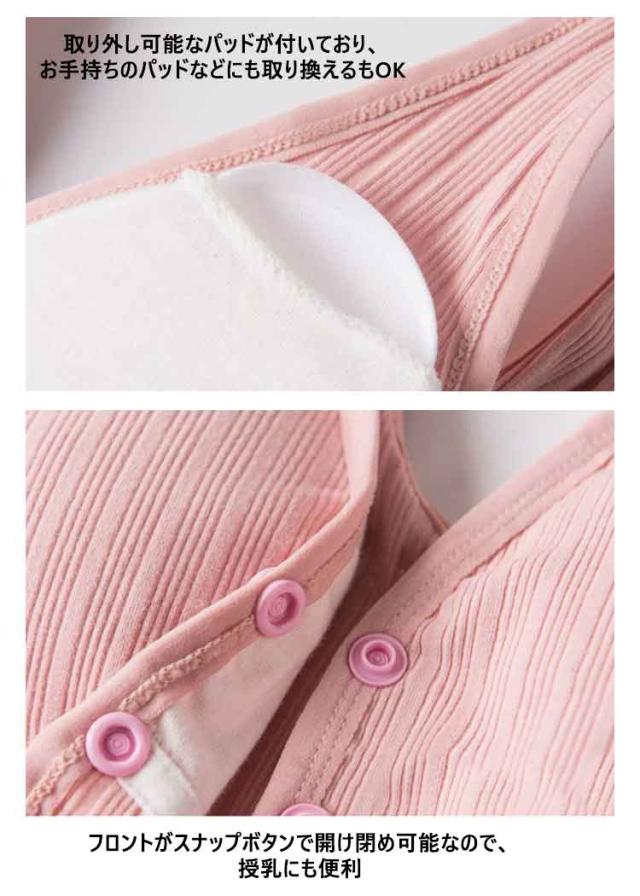 | 出産前から使えるシンプルなデザインのマタニティブラジャー。 ママに優しいコットン素材を使用した、フロントオープン式授乳ブラ フロントがスナップボタンで開け閉め可能なので、授乳にも便利 付け心地が抜群で産前から産後までおすすめのマタニティブラ♪ 取り外し可能なパッドが付いており、お手持ちのパッドなどにも取り換えるもOK! | |