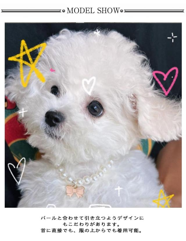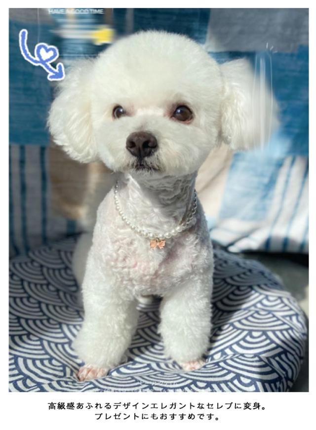 | かわいいペット用パール風のネックレス パールと合わせて引き立つようデザインにもこだわりがあります。 首に直接でも、服の上からでも着用可能。 高級感あふれるデザインエレガントなセレブに変身。 プレゼントにもおすすめです。 | |
