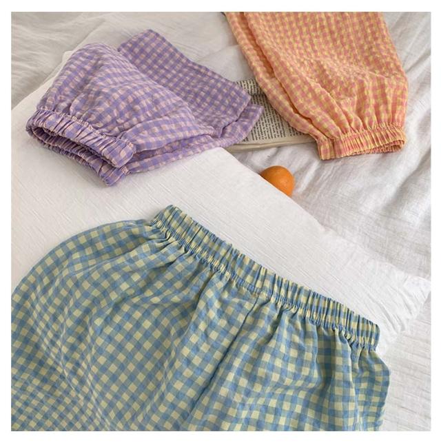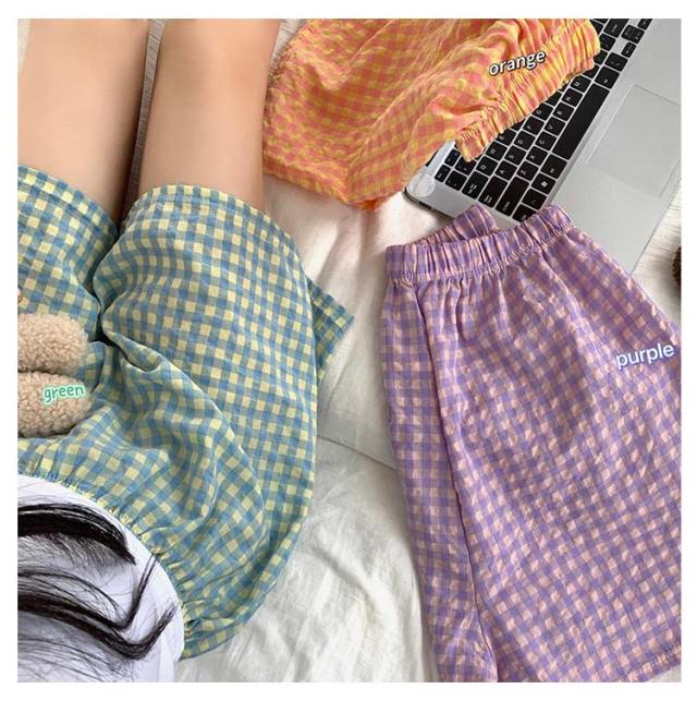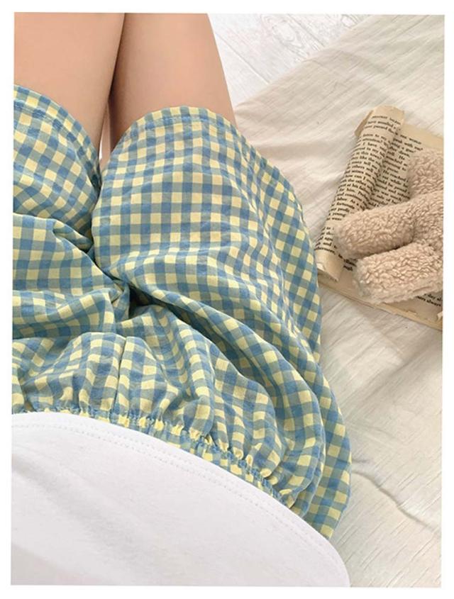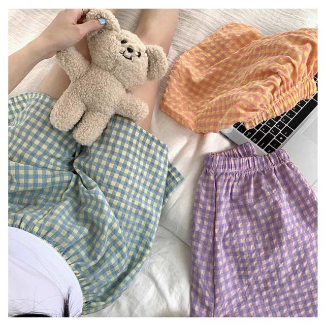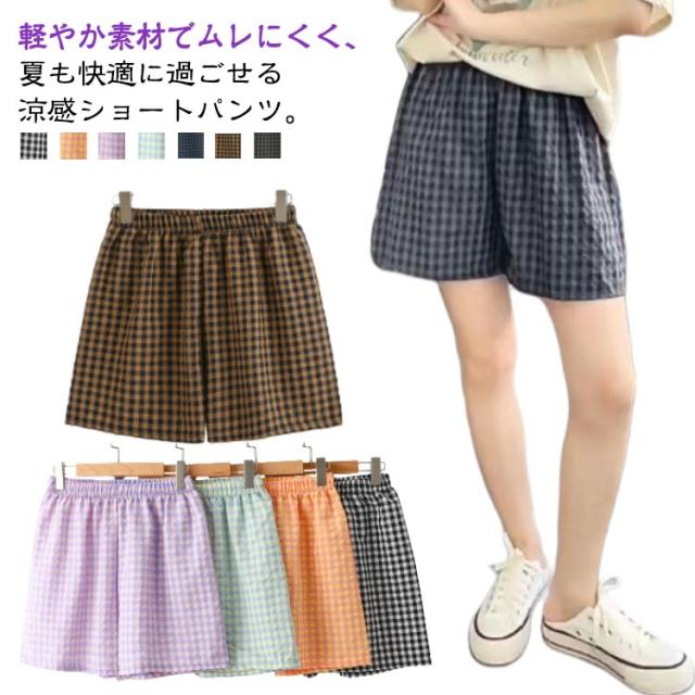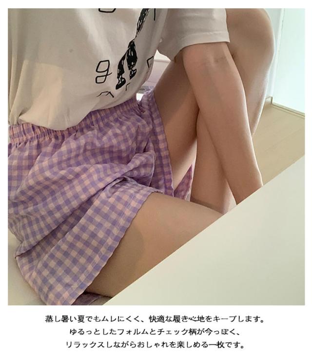 ハーフパンツ ショートパンツ 可愛い パジャマパンツ 薄手 ウエストゴム 夏 カジュアルパンツ ショートパンツ ワイドパンツ ルームウェア ルームパンツ リラックス チェック柄 シンプル 寝巻き 通気性 カジュアル