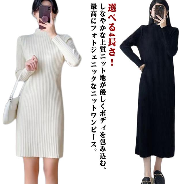 おしゃれ ロング丈 ニットワンピース ショット丈 大人 ロングワンピース 春 ミモレ丈 タイトワンピース ニット ワンピース フェミニン タイトワンピース 秋 冬 モックネック 長袖 着痩せ ストレッチ S M L XL