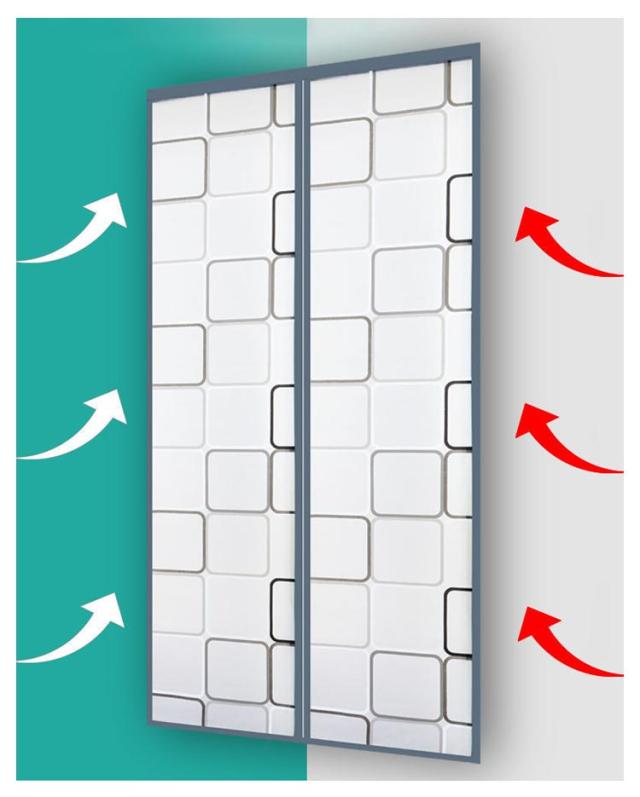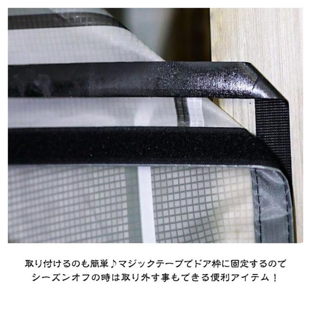 | 夏場はクーラーで冷えた空気を、冬場はストーブで暖まった空気を、部屋の外に逃がさない磁石の力で閉まる間仕切りカーテンです。 EVA素材なので、長期間の使用しても裂けることなく。 採光性がよいので、部屋の明るさを保ちます。 部屋のドアを開けておきたいペットのいるご家庭にオススメです! 取り付けるのも簡単♪マジックテープでドア枠に固定するので、シーズンオフの時は取り外す事もできる便利アイテム! | |