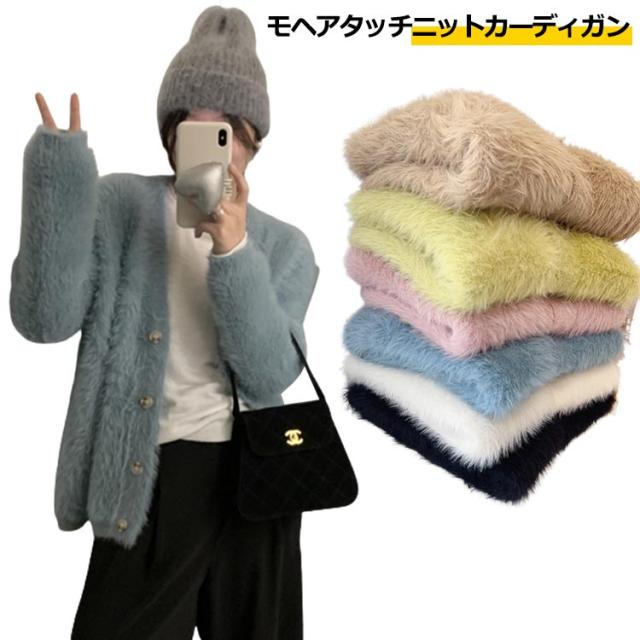 【送料無料】ニットカーディガン レディース カーディガン 長袖 Vネック モヘアタッチ モヘアニット もこもこ ふわふわ お洒落 カジュアル 大人可愛い トップス 秋新作