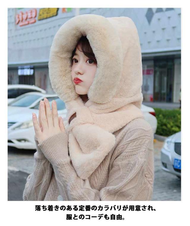 マフラー フード付き ネックウォーマー レディース 耳当て フェイクファー ふわふわ 帽子 スノーボード スキー スヌード 通学 中学生 高校生 通勤 保温 暖かい 一体化マフラー ストール 防寒 可愛い もこもこ 防寒 冷え対策 秋冬 秋 冬 フリース