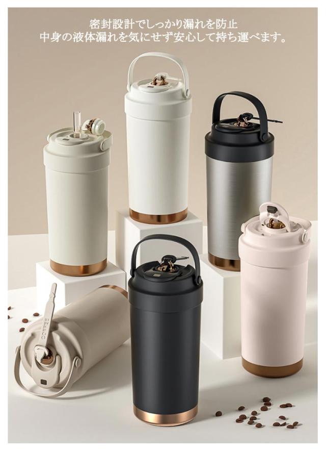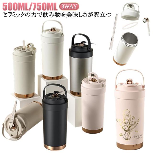 上品 3way タンブラー 魔法瓶 水筒 ストロー付き タンブラー セラミックコーディング シリコン 大容量 広口 食品級ストロー ストロー付き セラミックタンブラー 保温 500ML 750ML 二重構造 保冷 保温携帯 蓋付き 直飲み 3Way おしゃれ 溢れにくい タンブラー 水筒 保冷
