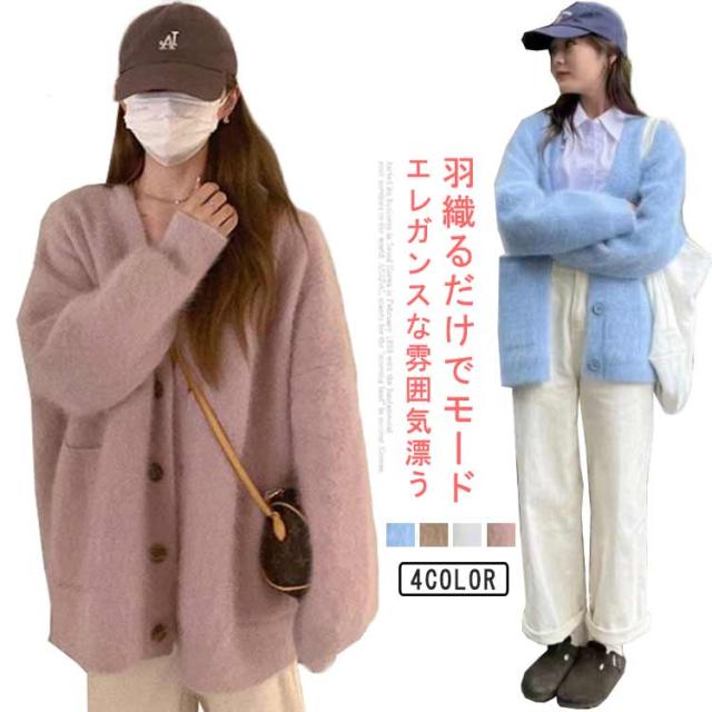カーディガン レディース ニット ニットカーディガン ニットセーター コーディガン アウター トップス ふわふわ モコモコ ポケット付き 羽織り 秋冬 長袖 オーバーサイズ 秋服 冬服 ゆったり 防寒 厚手 おしゃれ オフィス カジュアル 重ね着 通勤 通学 着やせ