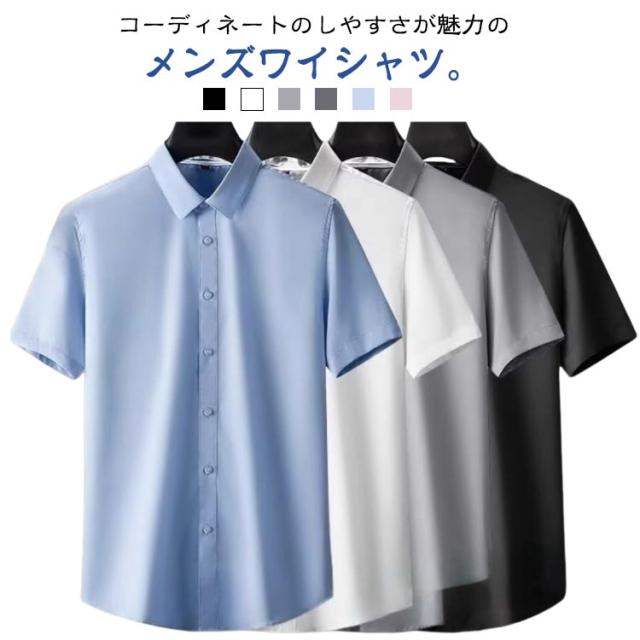 メンズ ポロシャツ 形態安定 ストレッチ Yシャツ ビジネス ワイシャツ カッターシャツ yシャツ 半袖 半袖シャツ 夏 ワイシャツ 通気性 オフィス 仕事用 カジュアル 爽やか シャツ 制服 大きいサイズ スリム