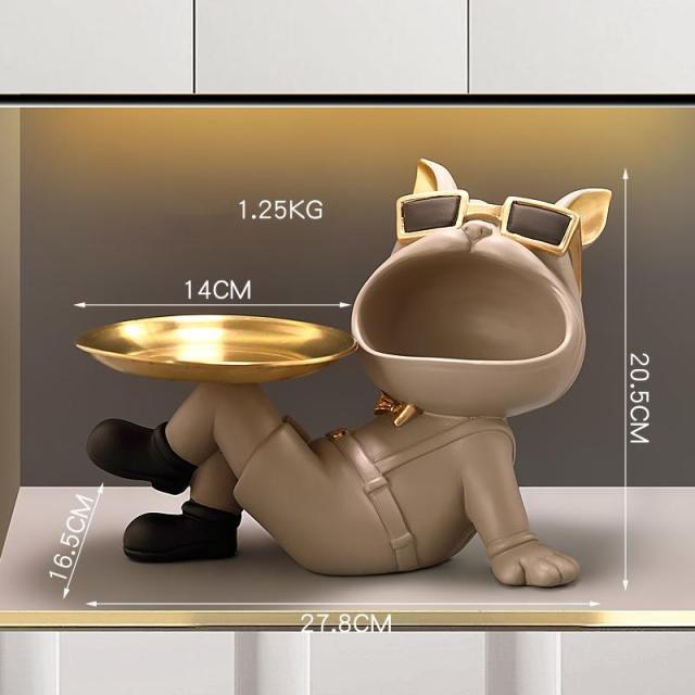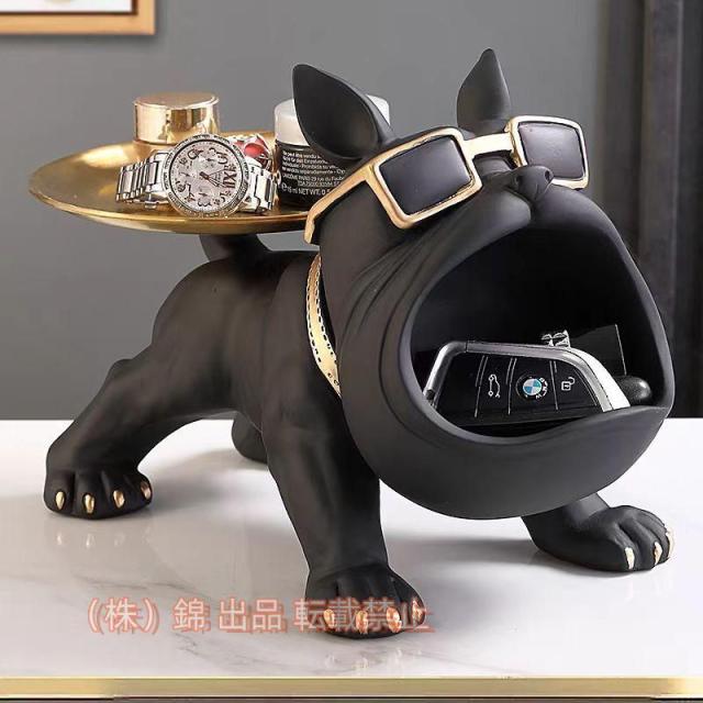 置物 玄関 犬の像の装飾トレイ フレンチブルドック ダブルトレイ キー収納トレイ犬 卓上 鍵置き 眼鏡 リモコン 化粧品 株式会社錦小物収納 インテリア 雑貨