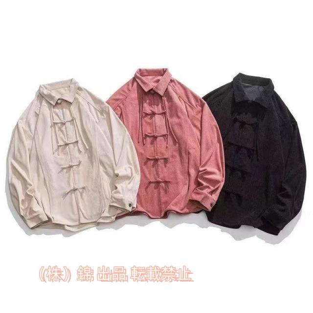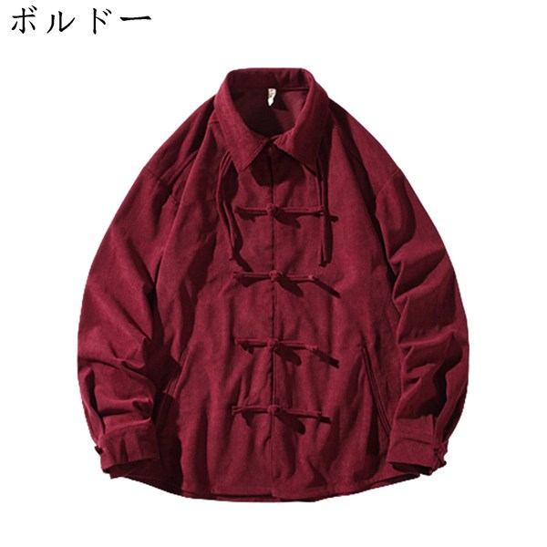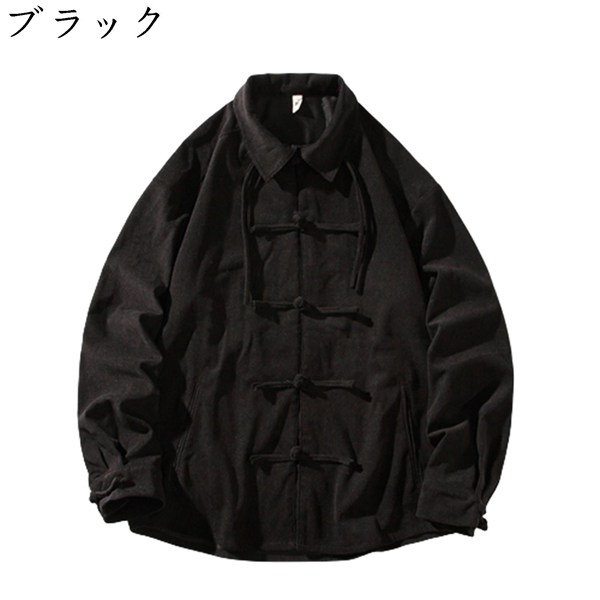 漢服 唐装 メンズ チャイナ服 スクエアカラー ロングスリーブ 結び釦シャツ 無地 薄手 株式会社錦チャイナボタン 大きいサイズ 伝統服 ゆったり