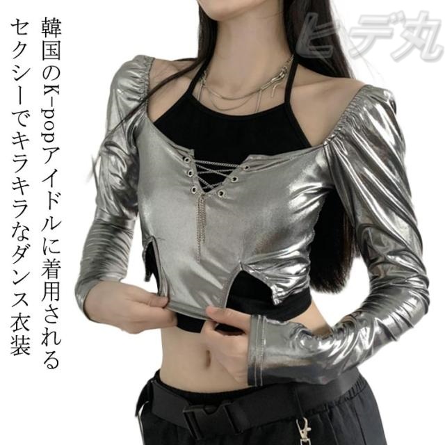 大人ダンス衣装 衣装 長袖 大人ダンス衣装 イベント ダンスチーム レディース 銀色 ヒップホップ ジャズダンス トップス 個性 キャミソール ヒップホップ 発表会 韓国 ストリート系 原宿系 へそ出し 春 夏 秋 S M L