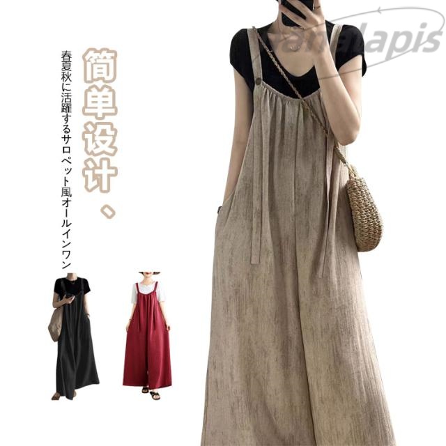 サロペット ゆったり 大人可愛い サロペット レディース 体型カバー オーバーオール 通勤 無地 シンプル 体型カバー カジュアル 夏 オールインワン 春夏秋 ロング リラックス 通学 軽量 薄手 大きいサイズ 20代 30代 40代