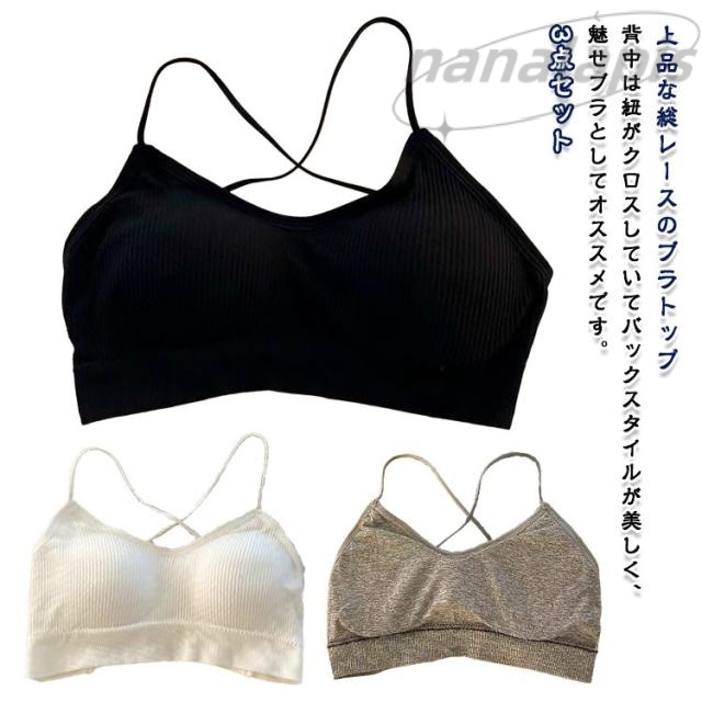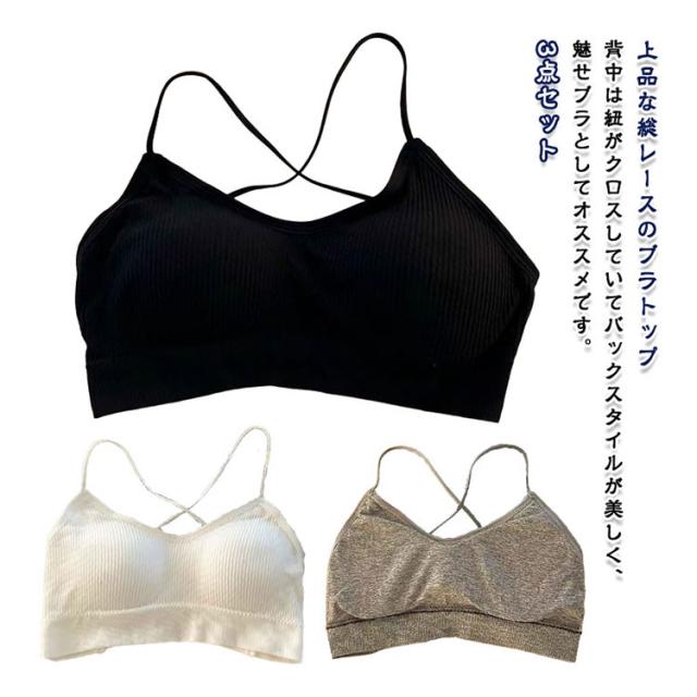 バック ブラトップ 見せブラ バッククロス 胸を小さく見せるブラ カップ付き キレイめ リブあみ フルトップ クロス 背中 魅せ 3点セット おしゃれ ブラジャー バックオープン インナー キャミ エレガント ブラジャー 重ね着 ヨガ ダンス