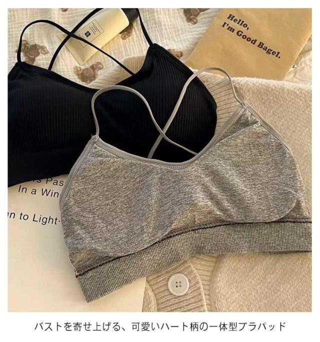 | 背中は紐がクロスしていてバックスタイルが美しく、魅せブラとしてオススメです。 ・ノンワイヤ?でもしっかりホールドされる、おしゃれなリブ編みブラトップ ・バックオープンタイプで背中みせのスタイリングにおすすめ! ・健康的な肌見せを演出する、バッククロスストラップ ・バストを寄せ上げる、可愛いハート柄の一体型ブラパッド ・幅広アンダーゴムで、ずれにくく快適フィット ・家でのんびり、まったりする時用のリラックスブラ・ナイトブラにもおすすめ ・ヨガやダンス、フィットネスのトップスにも最適♪ | |