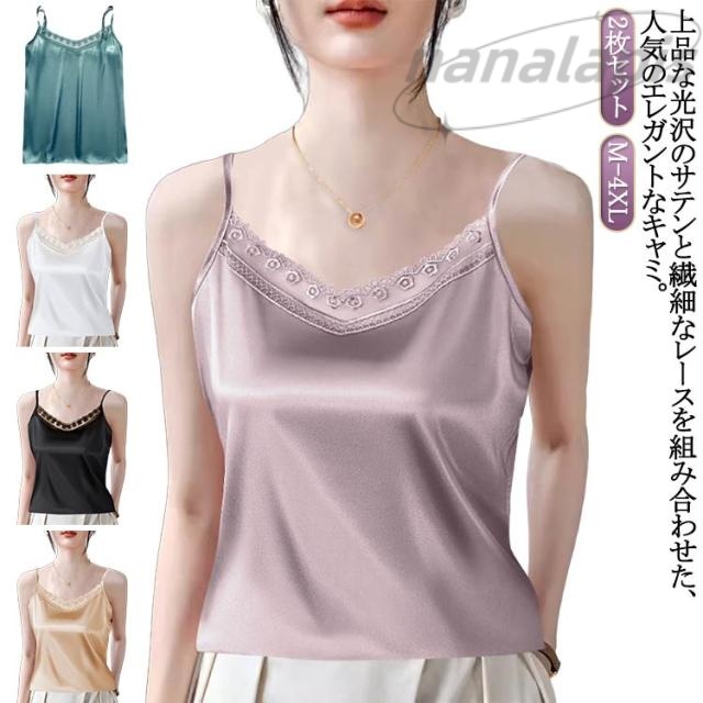 キャミソール サテン 刺? 胸元レース 大きいサイズ トップス レディース インナー サテンキャミソール レース タンクトップ サテンキャミ ノースリーブ ブラウス 大人 きれいめ サテン 光沢感 エレガント おしゃれ 20代 30代 40代