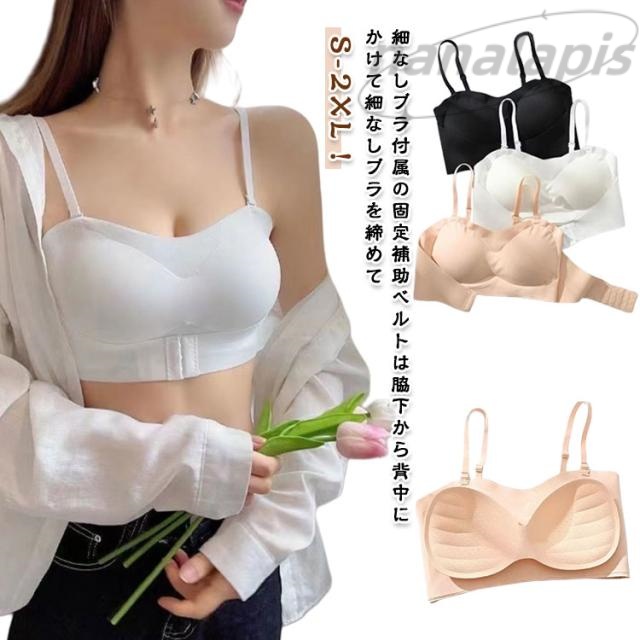| 細なしブラ付属の固定補助べルトは脇下から背中にかけて細なしブラを締めて、 滑り止めの効果が絶大。ストラッブレスブラフロントホックを留めて、 ズレ落ち防止効果だけではなく垂れたバストにサポ一トも実現! 通気性 生地の伸縮性と面積を広く取って背面着圧で程よく胸を抑えてくれるけど、 息苦しい圧迫感がなく、痛みも感じない胸が小さく見せるブラ。 | |