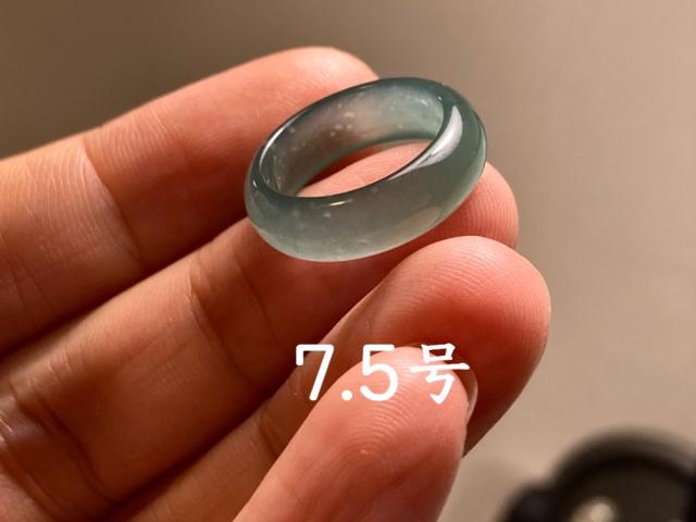 L14-17 ピンキーリング 氷種 青緑 7.5号 グアテマラ産 A貨 本翡翠 くりぬき リング