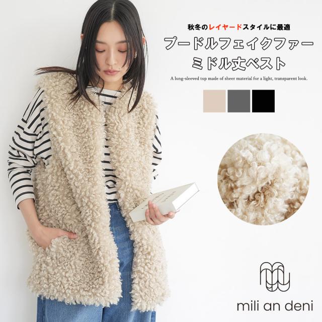 春新作 フェイクファーベスト Vネック ビッグサイズ 春夏ベスト フレンチスリーブ M レディース ミリアンデニ a235504