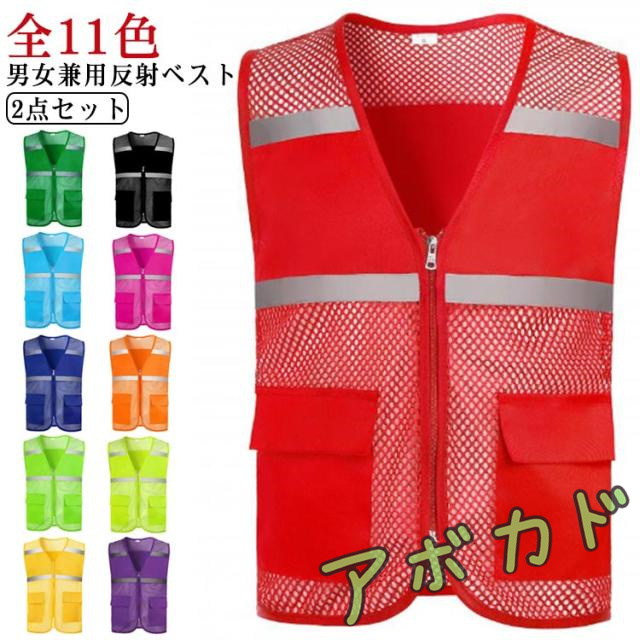 | 【全11色】【2点セット】 着脱カンタン、通気性・視認性バツグンの男女兼用反射ベストです。 メッシュ素材で軽いため、蒸れずに通気性抜群夏用におすすめ。 デイリーに不可欠なポケットが両サイドについていて実用性抜群。 交通事故防止!夜間のジョギングやウォーキング、犬の散歩などに最適! 暗い夜道でも自分の存在を車や自転車、歩行者にアピールする事ができます。 安心・安全な街づくりの活動をサポートしてくれる便利アイテム。 | |